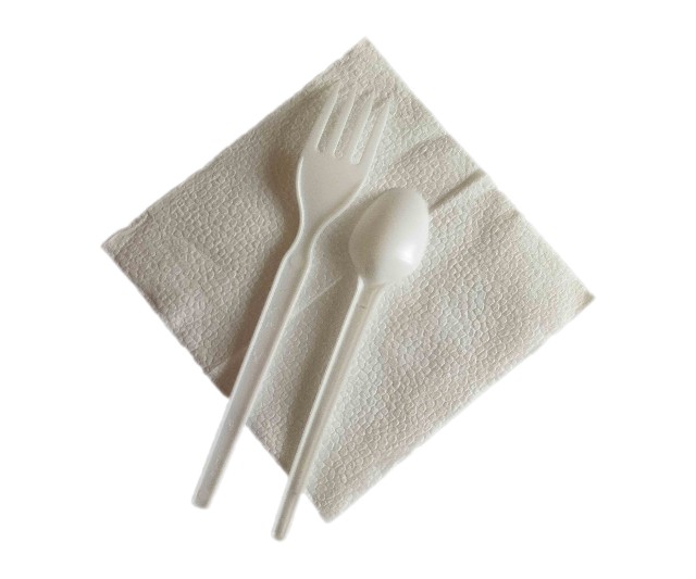 В составе набора ложки чайная, вилка, а также одноразовая бумажная салфетка.