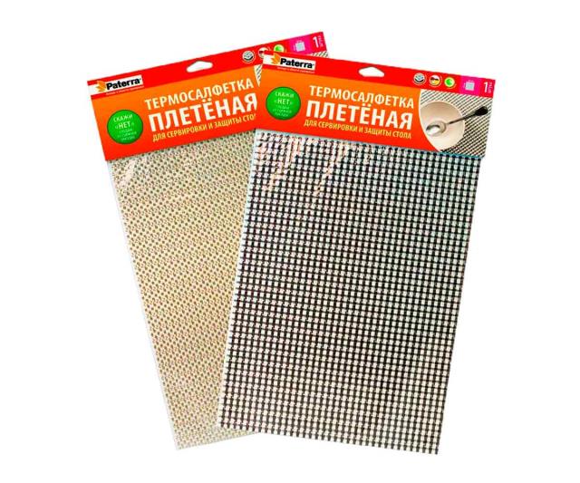 Термосалфетка устойчива к высоким температурам, обладает отличной износостойкостью, а ее плетеная поверхность не скользит по столу.