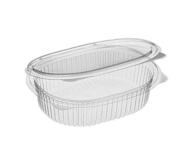 Пластиковый одноразовый контейнер-ракушка овальной формы предназначен для фасовки салатов, десертов, овощей, солений, холодных закусок с объёмом до 500 мл.