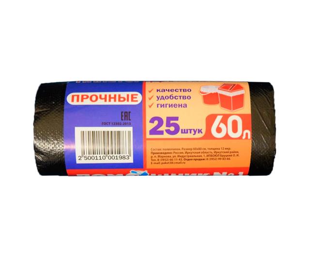 Пакеты для мусора "Помощник N1" 60л черные в рулоне